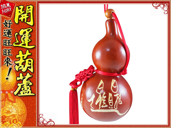 | 鹿港純天然種植‧ 紅色-(雕刻字體)日日-招財進寶(中型)開口胖胖型葫蘆(15cm)中國結天然葫蘆 |