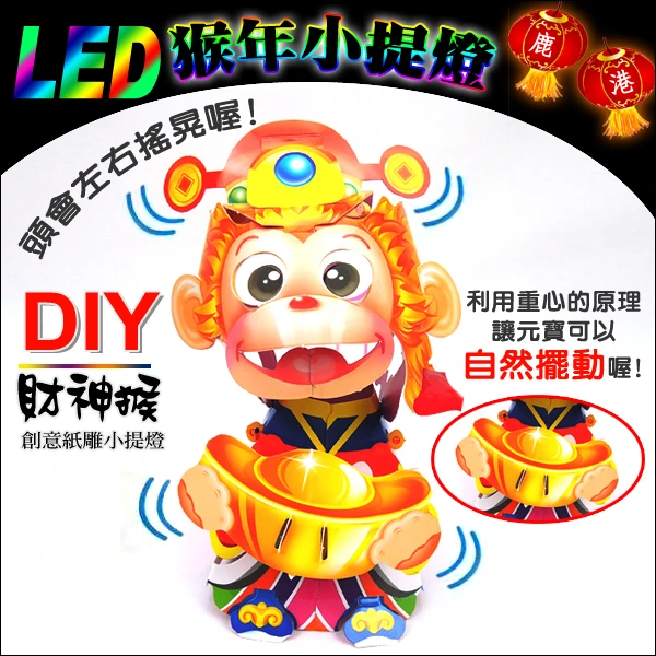 |  | ※猴年紙燈 這次開模 連刀模師 與分模師 都叫苦連天,實在是堪稱藝術品 配合LED燈在夜晚閃爍,元宵節 花燈遊街 保證是大家注目的焦點 3D立體紙雕的好處,培養小孩的自組能力,促進親子的相互交流 透過自己組裝 小朋友更能愛惜,公家機關 與 公司行號 要大量購買 可以發問商談價格